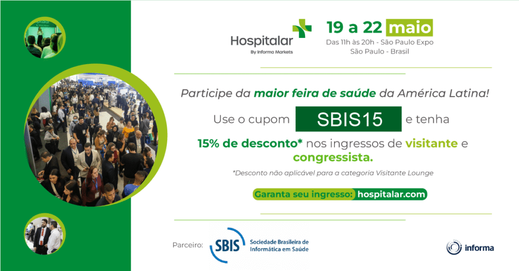 A Sociedade Brasileira de Informática em Saúde (SBIS) convida seus associados, parceiros e a comunidade da saúde digital para participarem de mais uma edição da Hospitalar, um dos principais eventos do setor na América Latina.